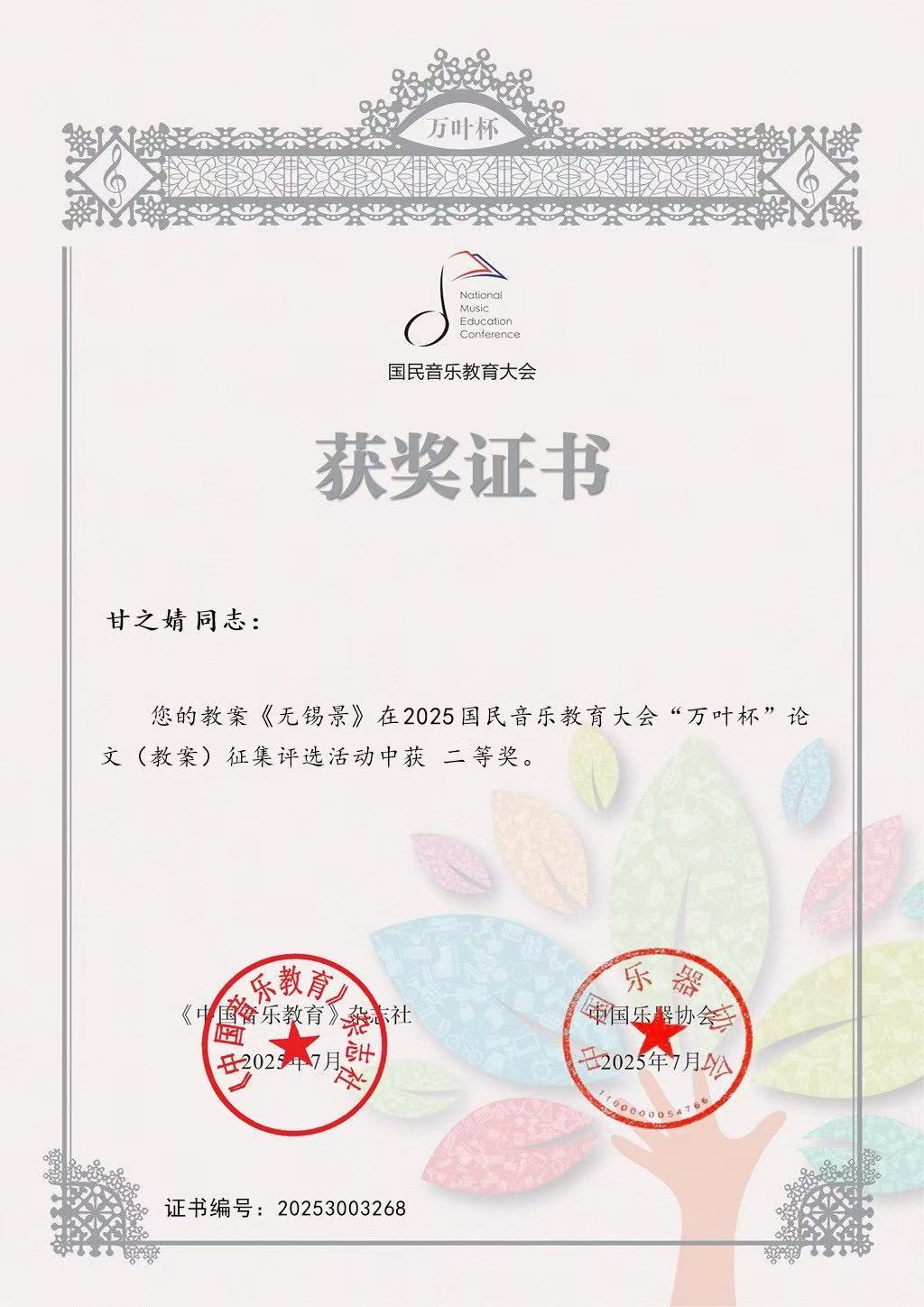 湖南师范大学美育中心教师指导音乐学院研究生在“万叶杯”全国论文(教案)评选中荣获5个奖项