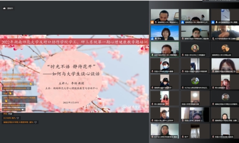 3月19日上午,2022年湖南师范大学及对口协作学校学工、研工系统第一期心理健康教育专题培训以腾讯会议的形式顺利举行。