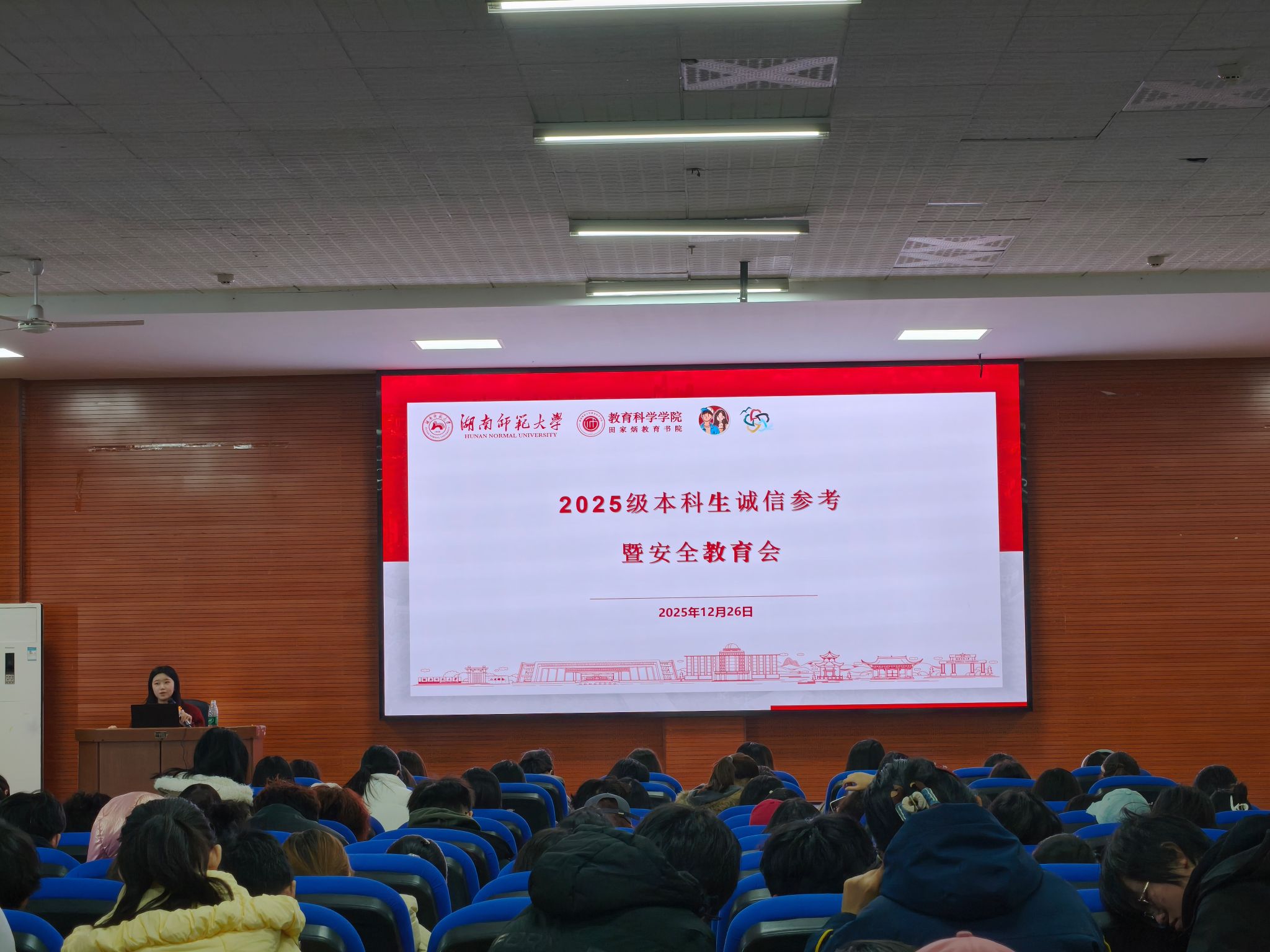 在院党委副书记林峻的统筹安排下,各年级结合实际召开专题会议。2022级辅导员深入学生宿舍,重点叮嘱诚信应考要点、假期安全防护与规划建议,将安全与学风要求融入日常,确保政策传达无死角、责任落实无盲区;2023级、2024级辅导员聚焦学生骨干的桥梁纽带作用,召开班长、寝室长工作会议,明确考风考纪、宿舍安全、假期动态摸排等关键内容,同步传达春季征兵政策,引导学子响应国家号召;2025级辅导员针对新生首次应对期末考的现实需求,召开全体本科生诚信参考暨安全教育会,系统解读我校考核违规处理办法、寒假安全及离返校流程以及长沙市烟花爆竹禁放区域与处罚规定,强化新生安全防范意识。