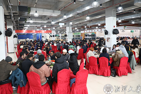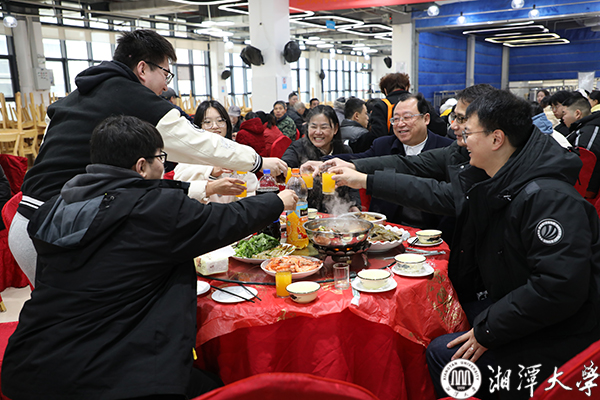 2月7日,受连日低温雨雪影响,湘大校园的树木挂上了长长的冰凌,寒意袭人。南苑师生餐厅二楼内却暖意融融,充满欢声笑语,学校在这里为留校学生举办迎新年团圆宴。校党委书记刘起军、副校长肖志伟、刘建平教授等与大家共聚一堂,以餐叙迎新年,向大家传递来自学校的关怀和问候。