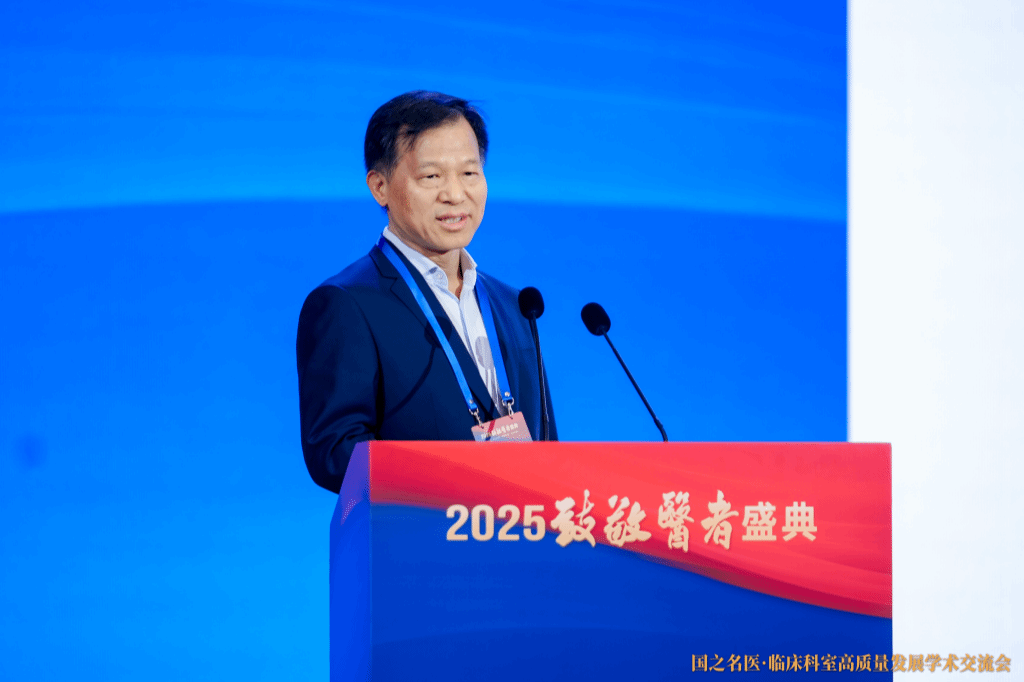 11月28日,2025致敬医者盛典之“国之名医:临床科室高质量发展学术交流会”上,湖南师范大学医学部党工委书记、中华医学会科普分会主任委员祝益民教授进行主旨发言。主办方图