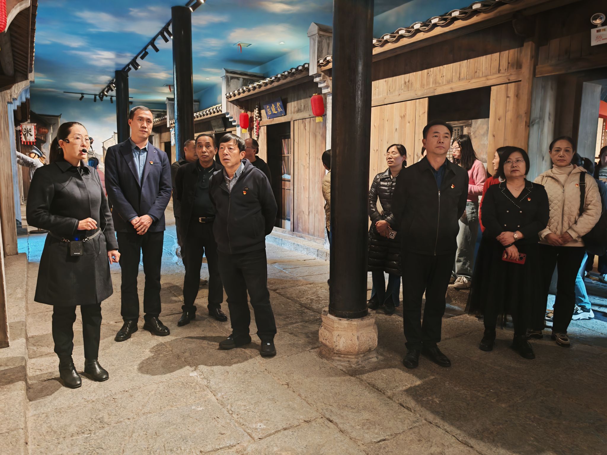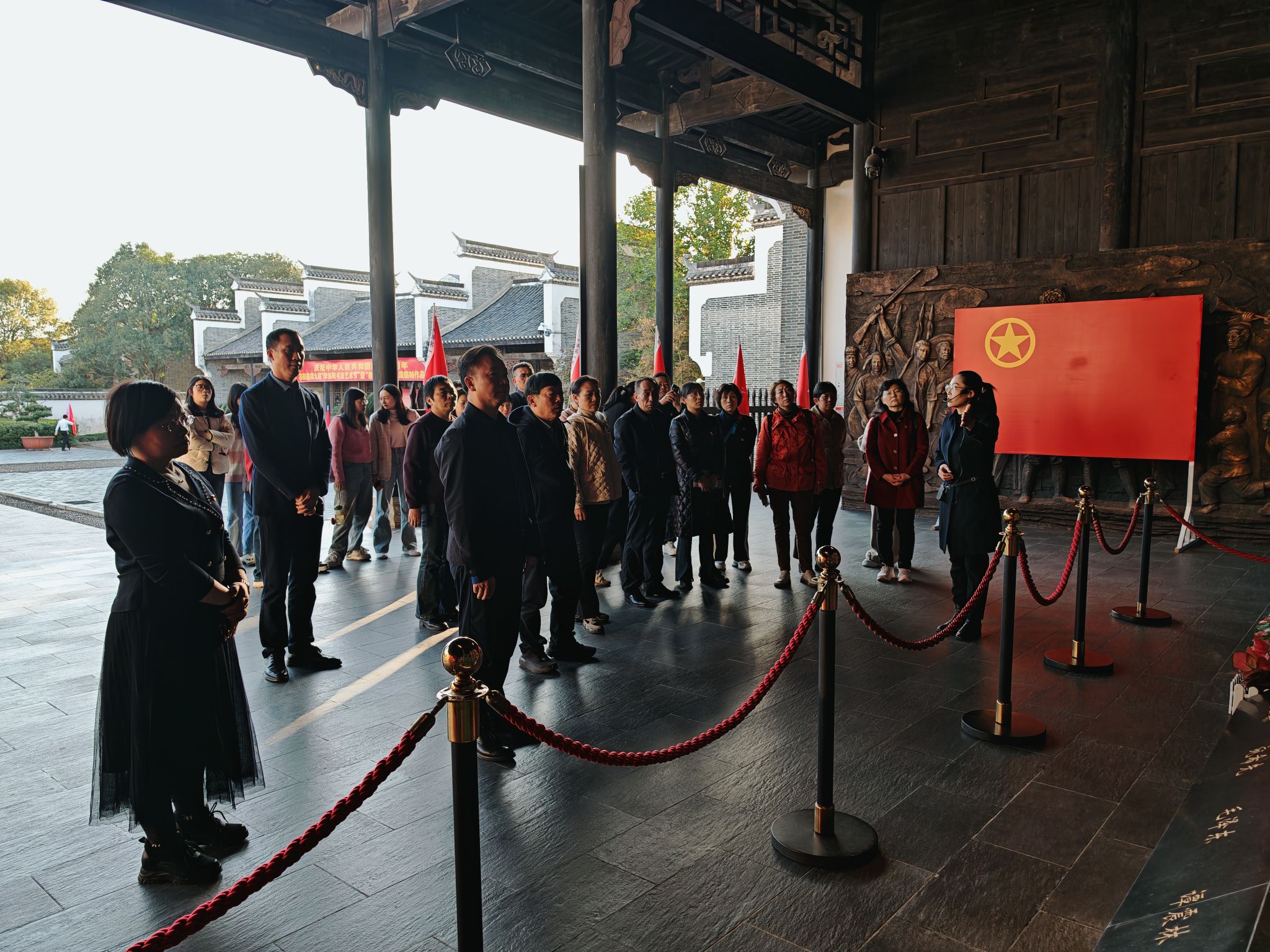 在茶陵县工农兵政府旧址正厅,全体党员,面对鲜红的党旗,重温入党誓词。馆内设有“毛泽东缔造的第一个红色政权——茶陵县工农兵政府历史陈列”,分为“潮起云涌,觉醒茶陵”“引兵井冈,首战茶陵”“建政茶陵,割据井冈”“红色政权,源自茶陵”“不忘初心,牢记使命”等5个部分13个展室,在讲解员的带领下,大家参观了纪念馆,追随革命先辈的历史足迹,缅怀革命先辈的丰功伟绩,领悟革命先辈的高尚品格。