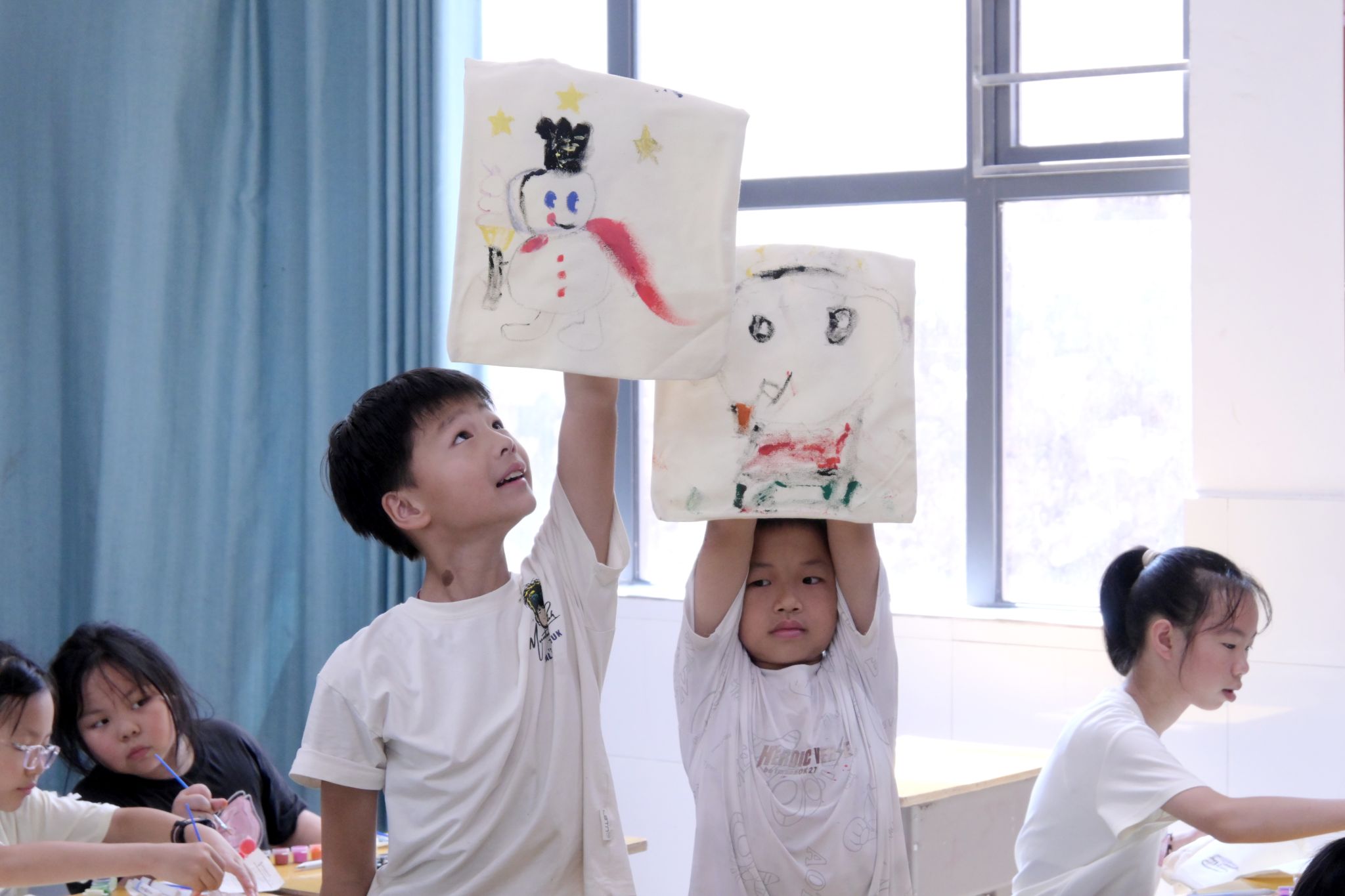 唐祖娴向学生们讲解帆布包绘画的基础技巧,带领学生们制作帆布包,提高了学生们的想象力;王姝妮为学生们讲解了扭扭棒的制作,并与学生们一同制作扭扭棒,锻炼了学生们的动手能力;孙妍为学生们讲解色彩搭配原则,增强了学生们对色彩的运用。