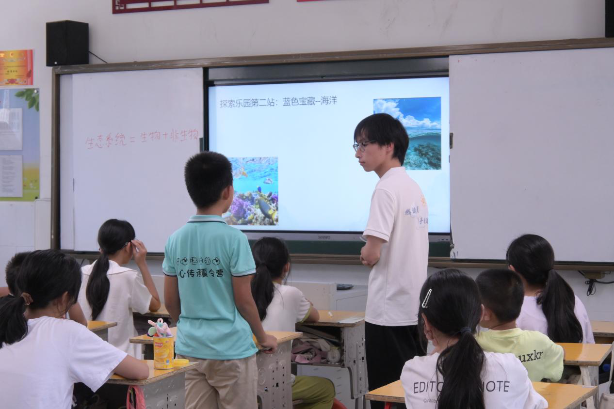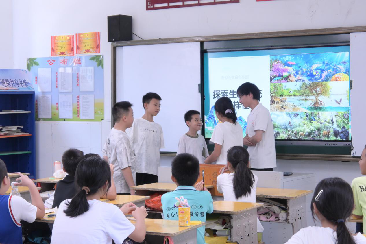 (通讯员 陈琼芝 彭璟怡 许海微)7月17日上午,教师教育系“燃情盛夏,携手教途”暑期社会实践团在良田学校开展“生态系统多样性”课程。支教组成员尹鑫担任主讲人。