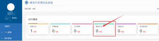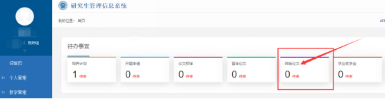 学生在上传终版论文后,导师登录管理信息系统,在首页“待办事宜”中,点击“终版论文”,进入审核界面。