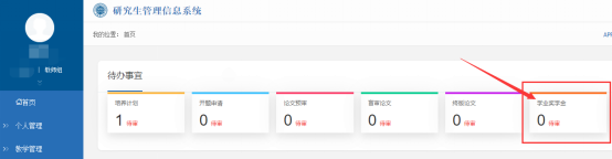 1.1待办事宜:研究生管理信息系统中,共有6项主要工作需要导师线上审核,该6项工作全部显示在登录界面首页的“待办事宜”中,如下图所示,其中的数字代表待审核学生人数。