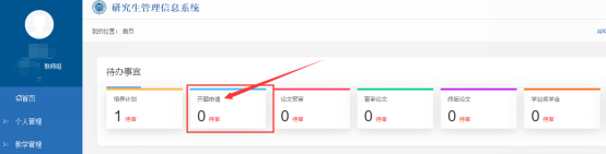 1进入开题审核页面:学生提交开题申请后,导师登录管理信息系统,在首页“待办事宜”中,点击“开题申请”。